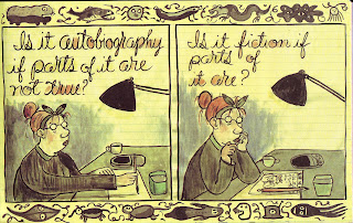 Sem repetir ou entrar em pormenores biográficos da autora, a sua herança cultural mesclada (filipina, irlandesa, americana), os obstáculos familiares pelos quais atravessou e até mesmo o seu percurso de vida, profissional, académico e artístico, compõem matéria que, não sendo explorado de forma directa - como veremos à frente, existem filtros de transformação pelos quais Barry faz atravessar todos esses elementos - encontram ainda assim um eco na sua obra. Como Kirtley assinala variadíssimas vezes (e discute-se na entrevista), existem momentos na obra de Lynda Barry em que ela parece dirigir-se, em primeiríssimo lugar, a si mesma quando menina, criando um mecanismo imaginativo e emocionalmente complexo e recompensador que a sua arte permite, transformando-se num veículo de diálogo consigo mesma e, assim, de redenção de todas essas dificuldades.